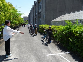 長距離走の学習で、記録の準備や確認後、元気よく走っていました。