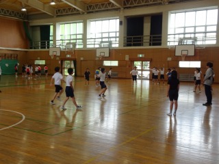 ワンバウンドまでOKの特別ルールで、仲間とつないで、相手に返していました。