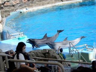 名古屋港水族館に到着し、イルカショーを見ました。
