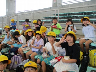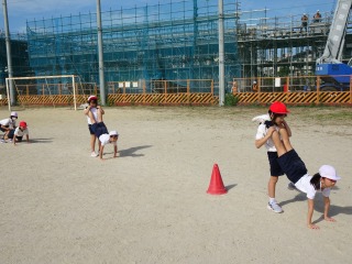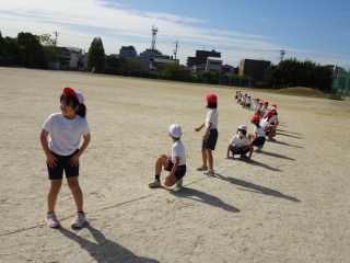3-2は、運動場で体育でした。