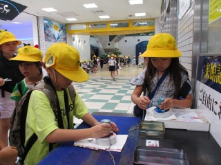 グループで、水族館内を見学したり、ミッションをクリアしたりしました。