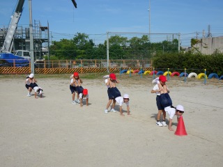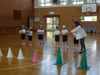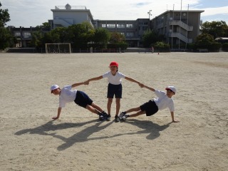 運動会で披露する集団演技の練習が始まりました。