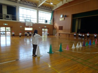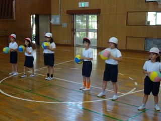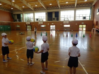 5-2は、体育館で体育でした。