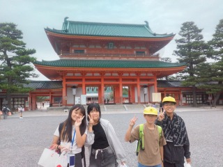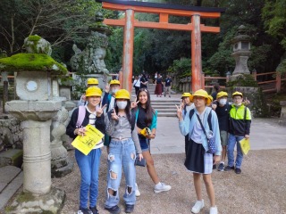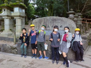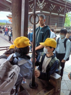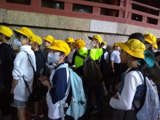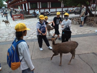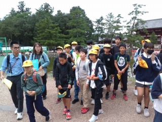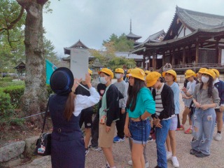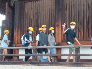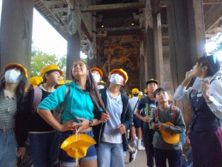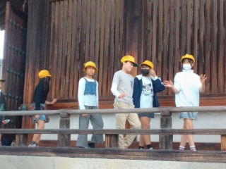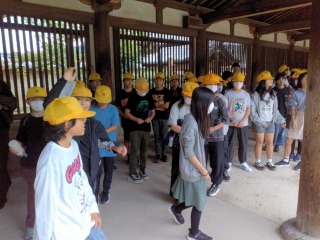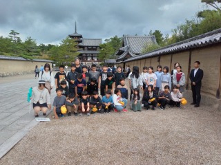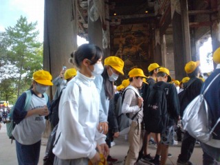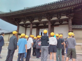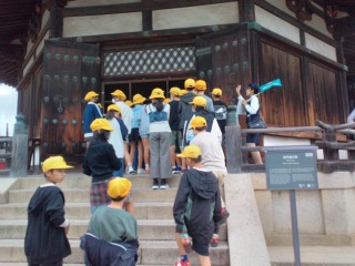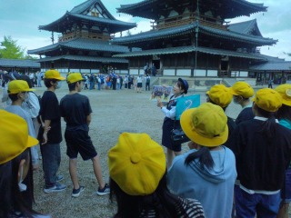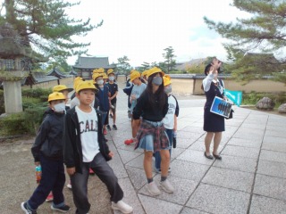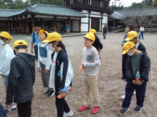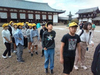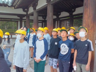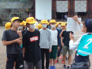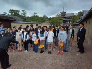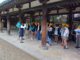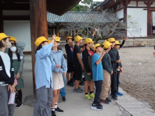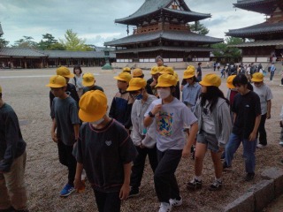 無事に奈良に到着し、法隆寺内を学級ごとに見学をしています。