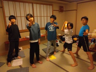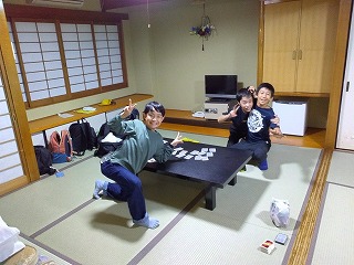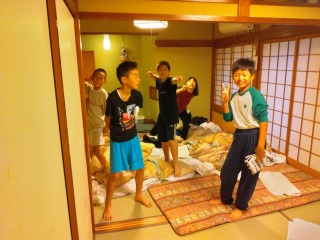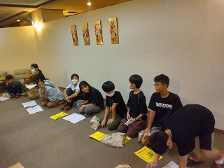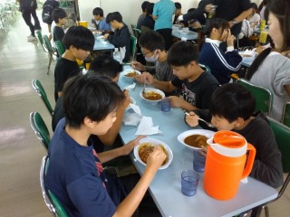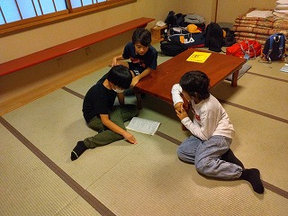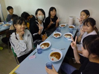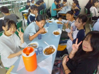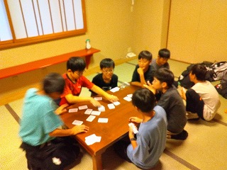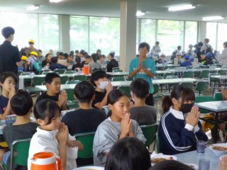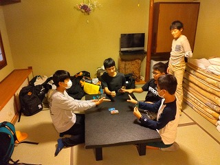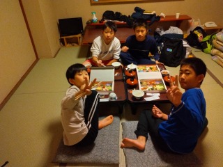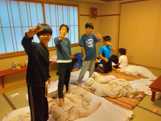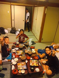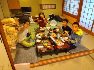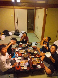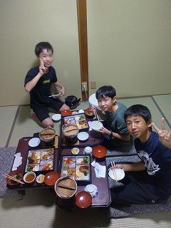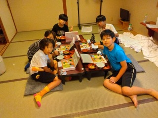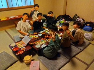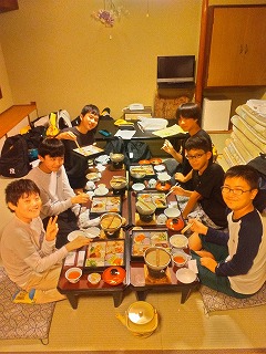 男子の部屋を中心にお知らせしていますが、女子の部屋も同様に朝食をとっています。