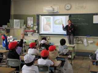 急にカバンから「バナナ」が出てきたので、児童は驚いた反応でした。