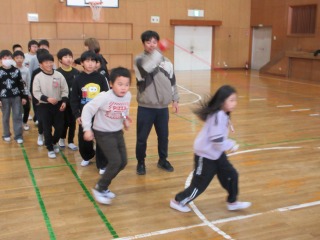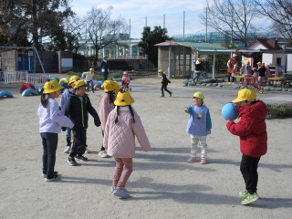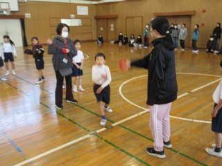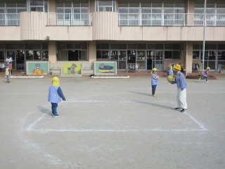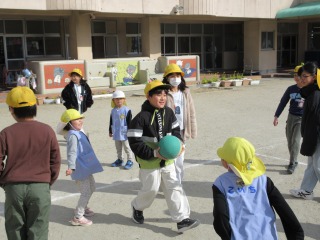 ドッジボールでは、園児に合わせて、緩いボールを投げるなど、優しさが見られました!