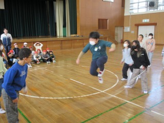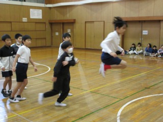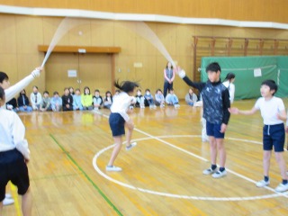 3時間目、2・4年生の「なわとび大会」が行われました。