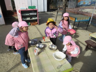 年長さんは、行事の準備があったためおりませんでしたが、年少さんと年中さんと交流しました。
