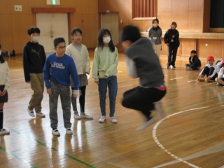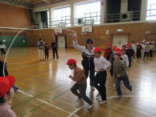 回っている縄に入り、跳び終えたら、素早く出る必死な姿がありました。