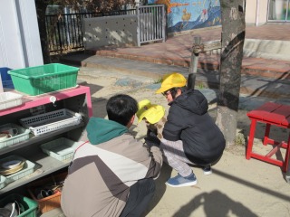 さて、本日の大放課は、1年生が幼稚園へ交流に行きました。