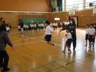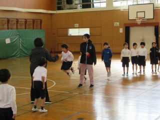 ペア学級からの応援を受け、一生懸命に跳んでいました。