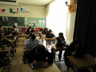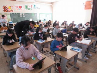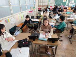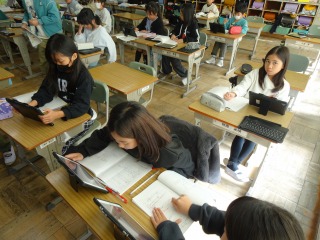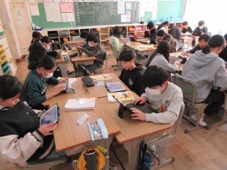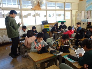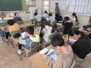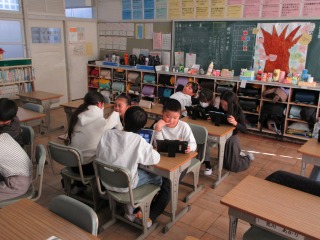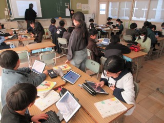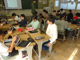 終わった人は、タブレット端末で学習を進めていました。