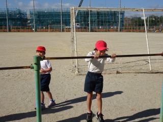 1-2は、運動場で体育でした。