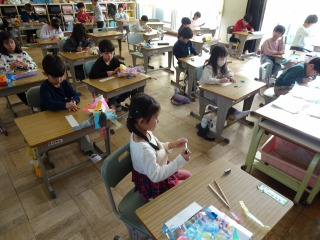 文房具の単語を確認して、これから学級全体で活動する準備をしていました。