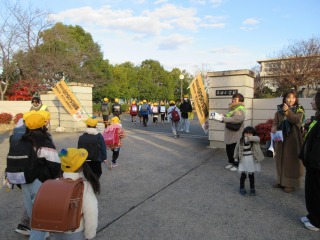 PTA委員の皆さんとのあいさつごんごん運動、とても活気があってよいです。
