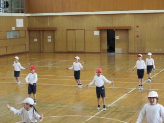 短縄の練習に励んでいました。
