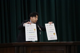また、体育館では、終業式の代表児童発表のリハーサルを行いました。