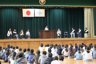 選挙に関する出前授業で講話を聞き、その後、投票の疑似体験をすることができました。