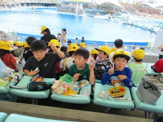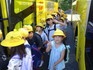 今日は、2年生の校外学習で、名古屋港水族館へ元気に出発しました。