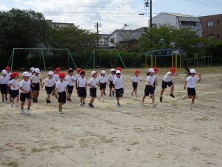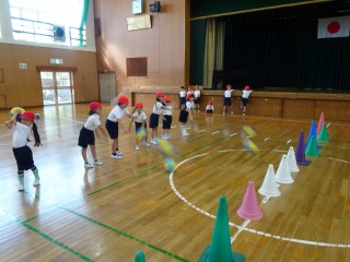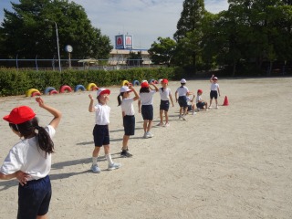 運動会で披露する集団演技の練習が始まりました。