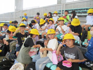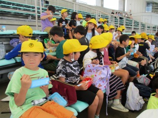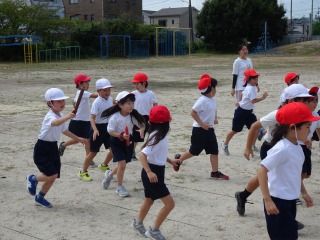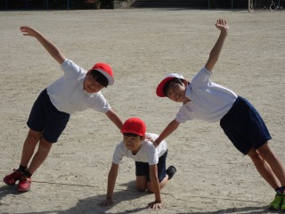 3-2は、運動場で体育でした。
