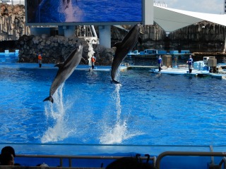 名古屋港水族館に到着し、イルカショーを見ました。