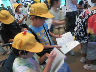 グループで、水族館内を見学したり、ミッションをクリアしたりしました。