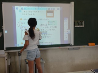 分数の計算をグループや個人で、習熟を図っていました。