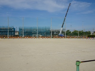 1-2は、運動場で体育でした。