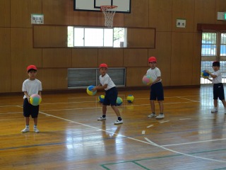 ボールで的に当てる学習でした。