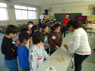 2年生が作ったおもちゃを1年生が楽しんでいました。
