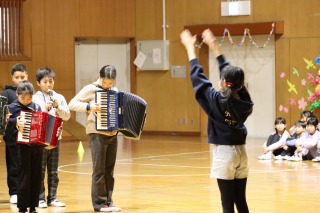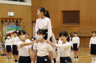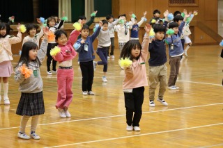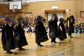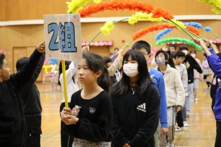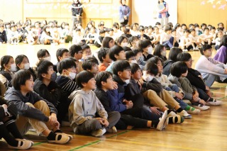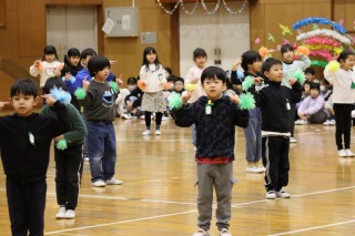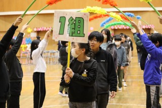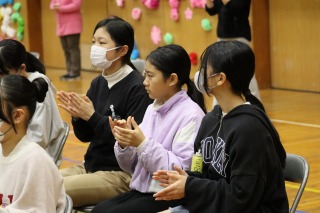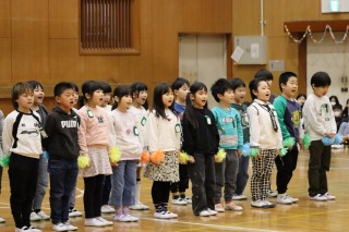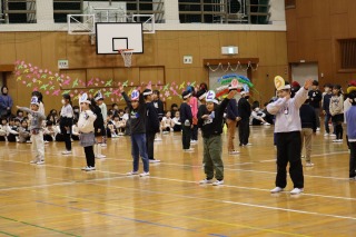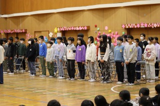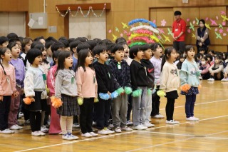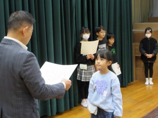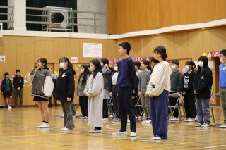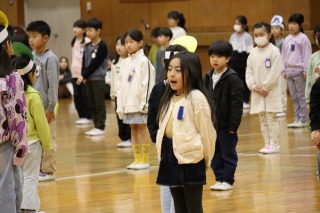 体育館には、児童会役員と関係する先生たち、表彰される人たちだけが集まりました。