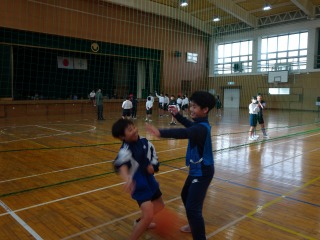 前面でドッジボール、後面でバスケットボールに真剣に取り組んでいました。