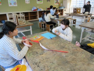 作品づくりの仕上げで、完成作品の鑑賞をするとのことでした。