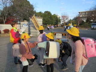 朝、児童の登校時に合わせて、あいさつごんごん運動がありました。