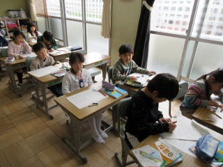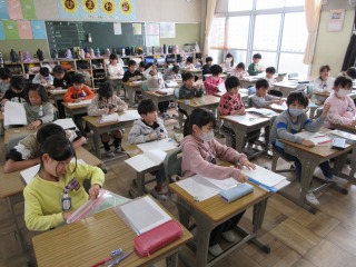 文房具の単語を確認して、これから学級全体で活動する準備をしていました。