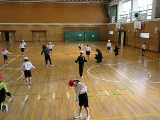 3時間目、体育館では、2年生全体でドッジボールをしました。