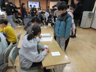 2-2は、6年生を送る会に向けた準備をしていました。