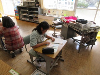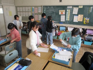 多くの学級が、年度末の片付けやまとめをしていました。