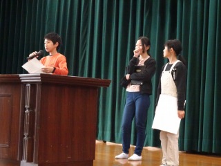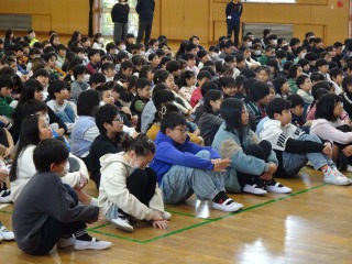 学校運営協議会の方も見えたので、「ハナミズキ」のハーモニーを披露してくれました。