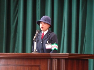 楽しい雰囲気から朝会モードへ切り替えて、校長先生の話や新しく着任した交通指導員さんの話を聞きました。