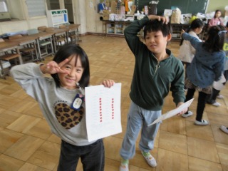 1組と2組で、学力や体力などの勝負事の結果が貼りだされていました。
