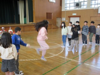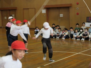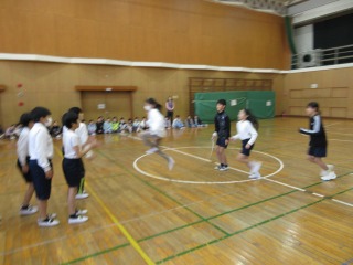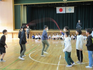 3時間目、2・4年生の「なわとび大会」が行われました。