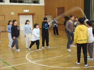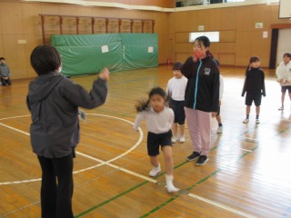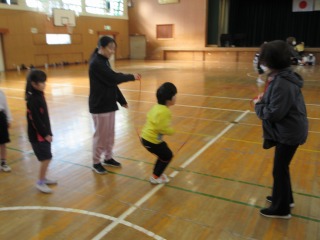 回っている縄に入り、跳び終えたら、素早く出る必死な姿がありました。