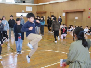 ペア学級からの応援を受け、一生懸命に跳んでいました。