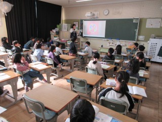 今日は、12/1の月曜日の朝会や3年生の出前授業、4年生のイングリッシュ・イベントがあったので、お知らせします。