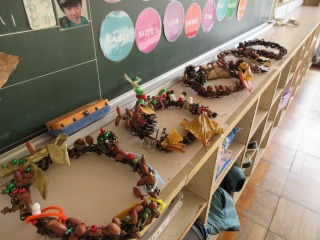 教室の後方には、図工の作品が展示されていました。