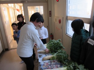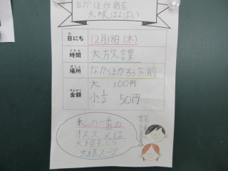 育てた「大根」を収穫し、教師向けに販売しました。