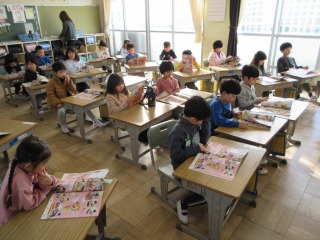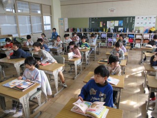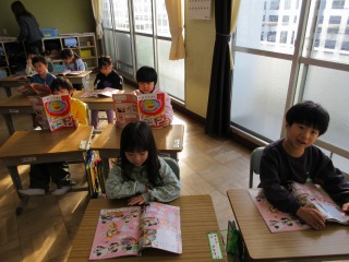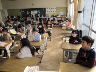 黒板に自分の名前が書かれるまで、児童は読書して待っていたり、ドキドキしていたりしていました。